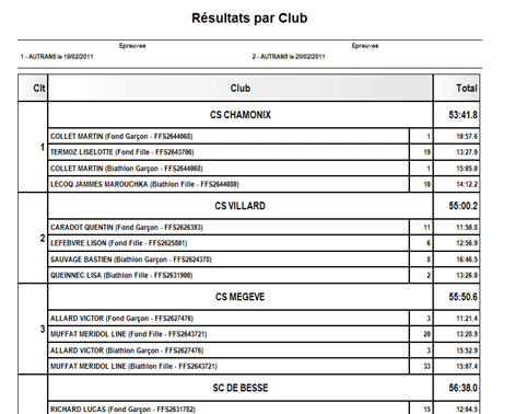 Sélectionner les courses (Clrt –entrée ) qui composeront le classement du challenge ( une course Fond une course Biathlon)