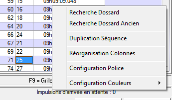 Il suffit de cliquez sur le côté droit de la souris et de valider recherche dossard ;
