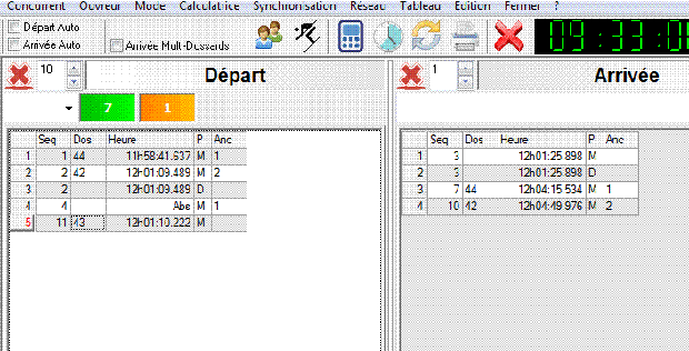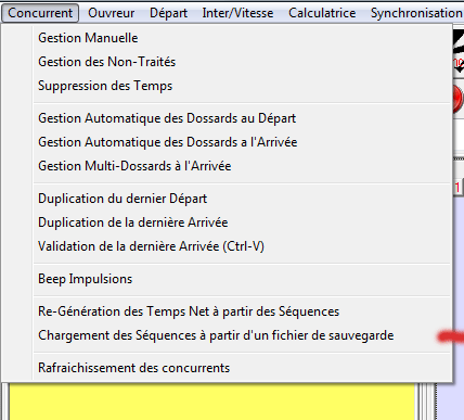 Concurrent : gestion manuelle, permet la modification des temps d'un coureur et la gestion des non traités ;