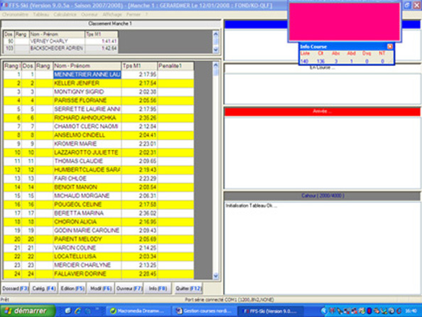 chronométrage, les temps étant intégrés dans le programme « on