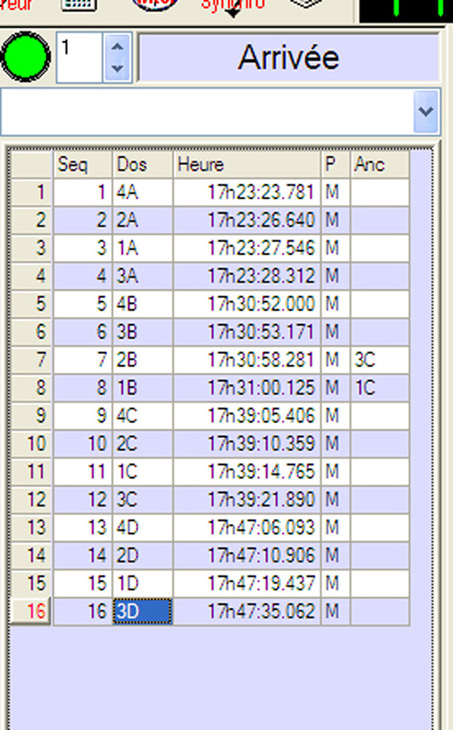le dossard de fin et le temps en millièmes. Et, ENREGISTREZ ;