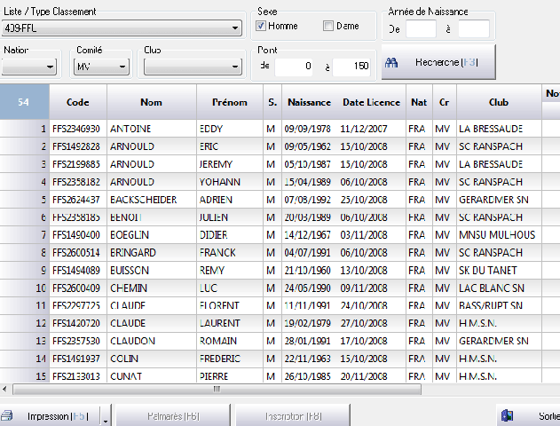 des concurrents depuis coureur CTRL-F12, permet de réaliser un fichier