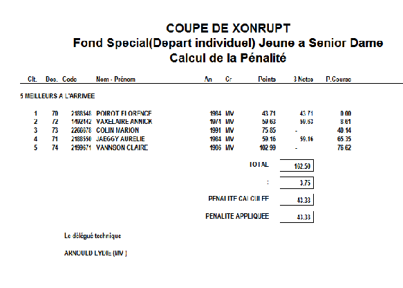Calcul de la pénalité course féminine
