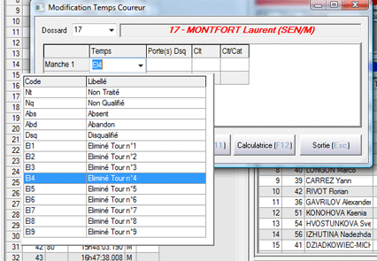 modification temps coureur, n° de dossard,