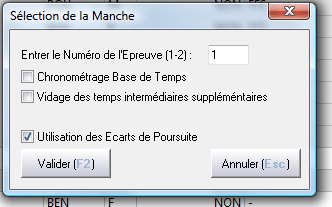 A l'ouverture du programme de chronométrage, cliquez sur 'utilisation des écarts de poursuite'.