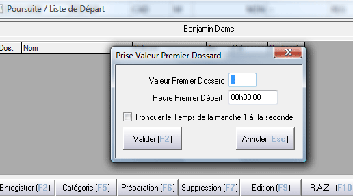 Vérifiez le 1 er ,dossards à attribuer et indiquez l'heure de départ (ces données sont modifiables par vos soins.)