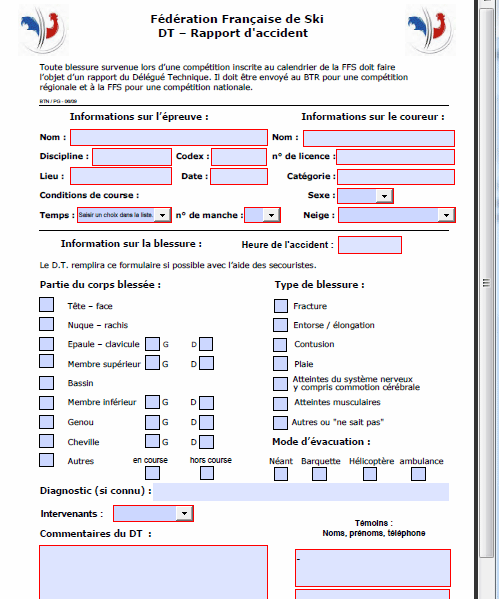 Fédération Française de Ski, a souhaité que soit établi un formulaire