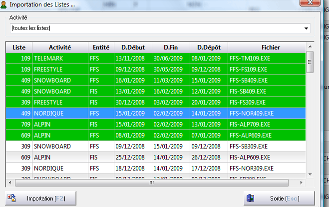 En saison il y a une liste par mois, voir sur ffs.fr les dates de mises à disposition/
